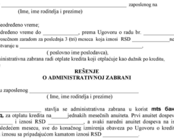 Administrativna zabrana je jedan od najučestalijih dokumenata u svetu bankarstva, trgovine i radnih odnosa. To je pravno sredstvo kojim zaposleni daje saglasnost svom poslodavcu da mu se od mesečne zarade odbija određeni iznos radi otplate