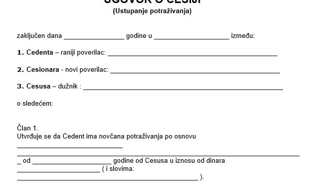 Preuzmite obrazac ugovora o cesiji